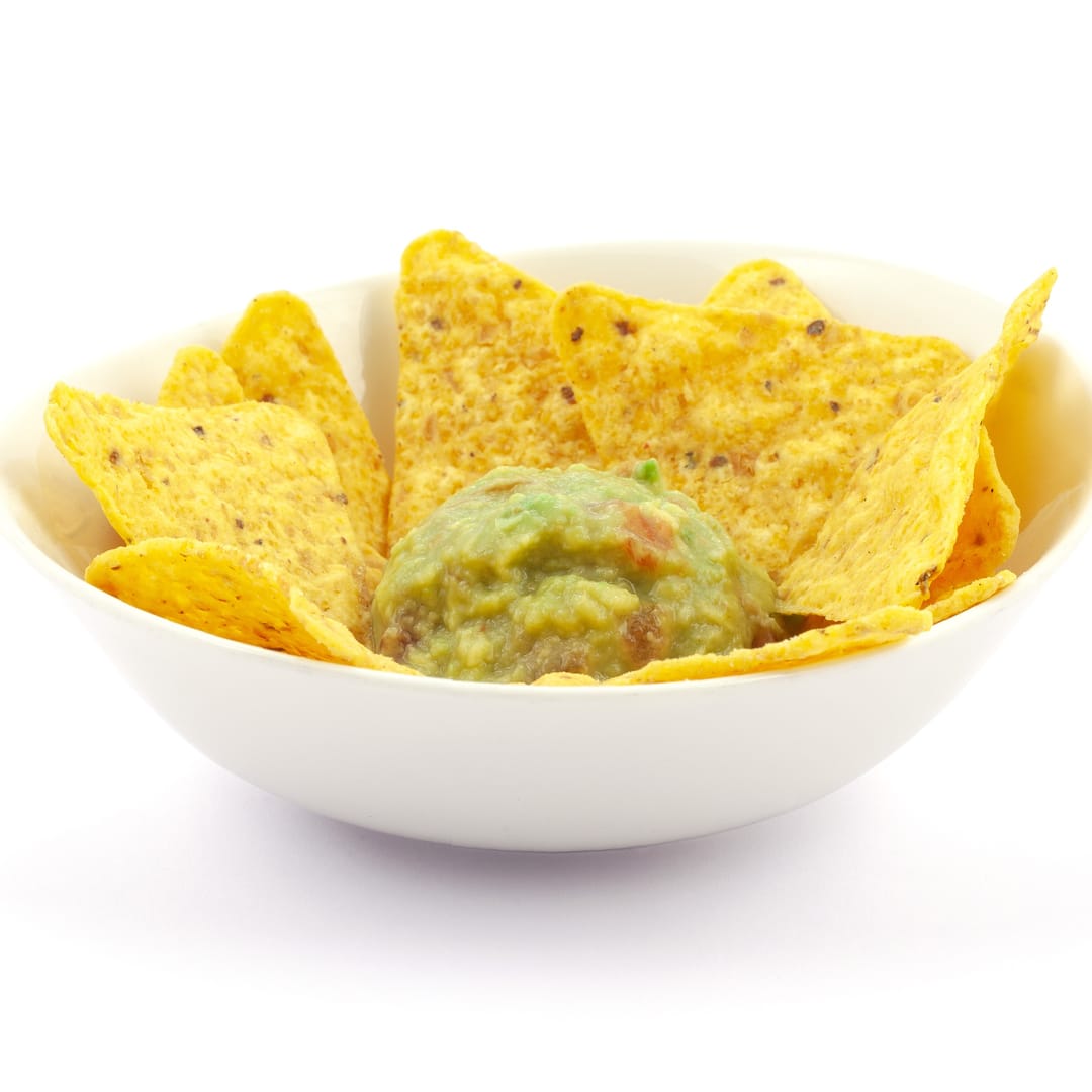 Amanida amb base d'alvocat, ceba, tomàquet i llimona amb natxos