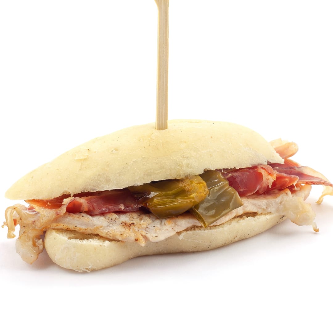Pa de Viena, llom, pernil i pebrot
