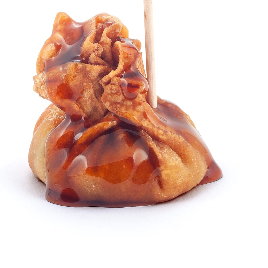 Pintxo cruixent de massa kataifi que embolcalla una bola de sobrassada, daurat, lleuger i intens de sabor.