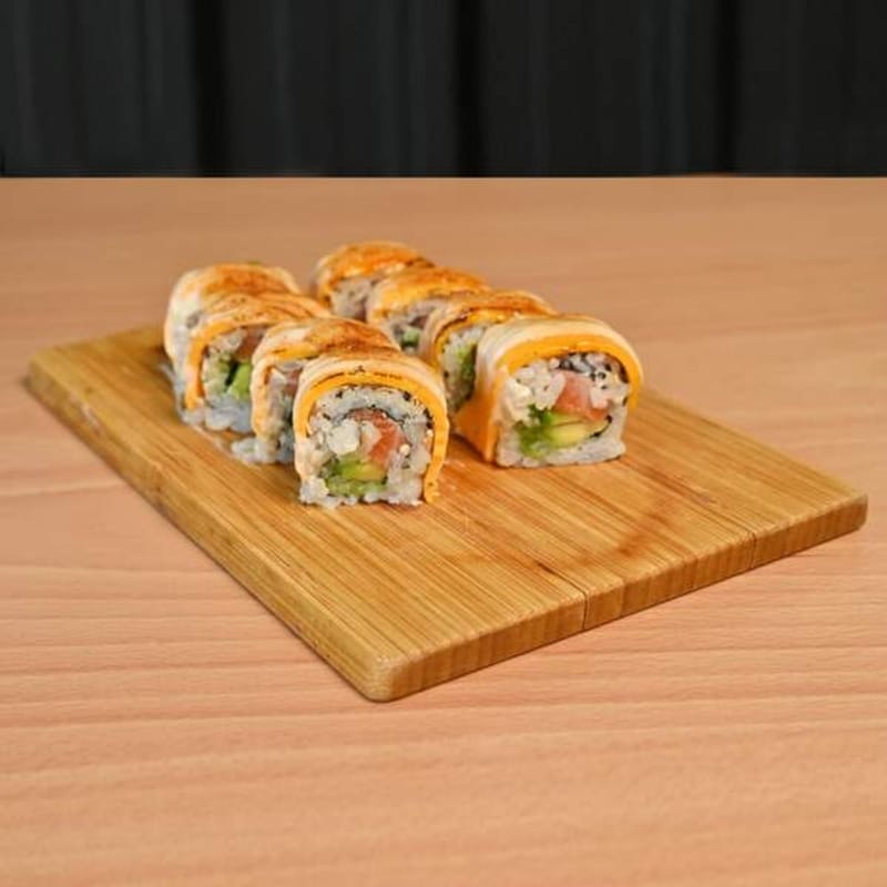 3 nigiri, 3 nigiri flameado, 8 maki, 4 uramaki, 4 uramaki salmón flameado, 4 sashimi