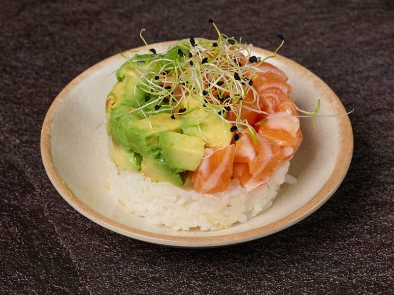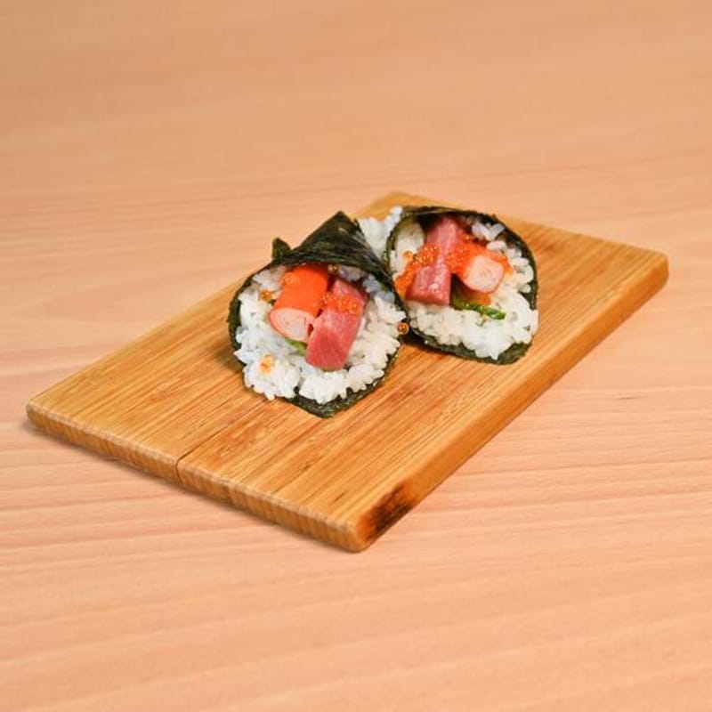 2 nigiri salmón, 2 nigiri atún, 4 uramaki California y 4 maki de salmón.