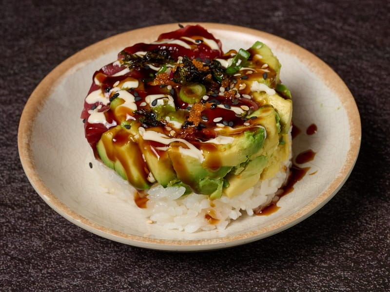 Pollo con salsa teriyaki, vegetales, huevo y nori