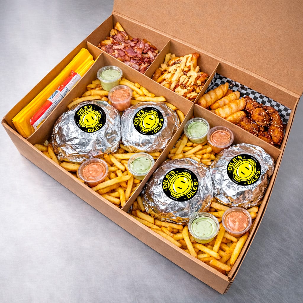 4 DILETAS + 4 ALITAS + 4 TEQUEÑOS + 1 FRIES GOLDEN BACON + 1 TOKIO CHICKEN CHIPS + 4 FRIES + 1 KINDER BUENO