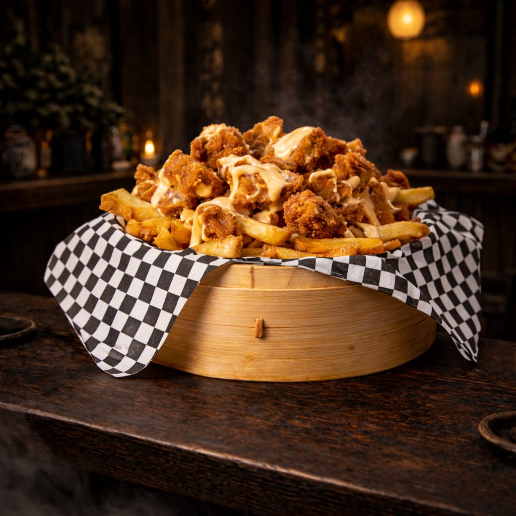 Bocaditos de pollo Asiático con patatas en spicy mayo