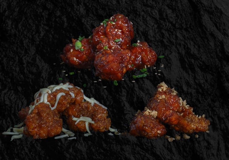 La opción ideal para un antojo rápido o tu primer encuentro con el sabor coreano. Marinado y doblemente frito para lograr una textura crujiente por fuera y jugosa por dentro. Elige 1 de nuestras salsas coreanas: agridulce picante, salsa de soja caramelizada o miel con mantequilla. Puro sabor en cada bocado.