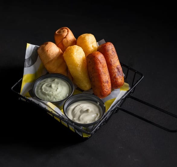 Palitos de queso fresco envueltos en una masa y fritos, con 2 tequeños tradicionales, 2 tequeños de maíz, 2 tequeños de Plátano.